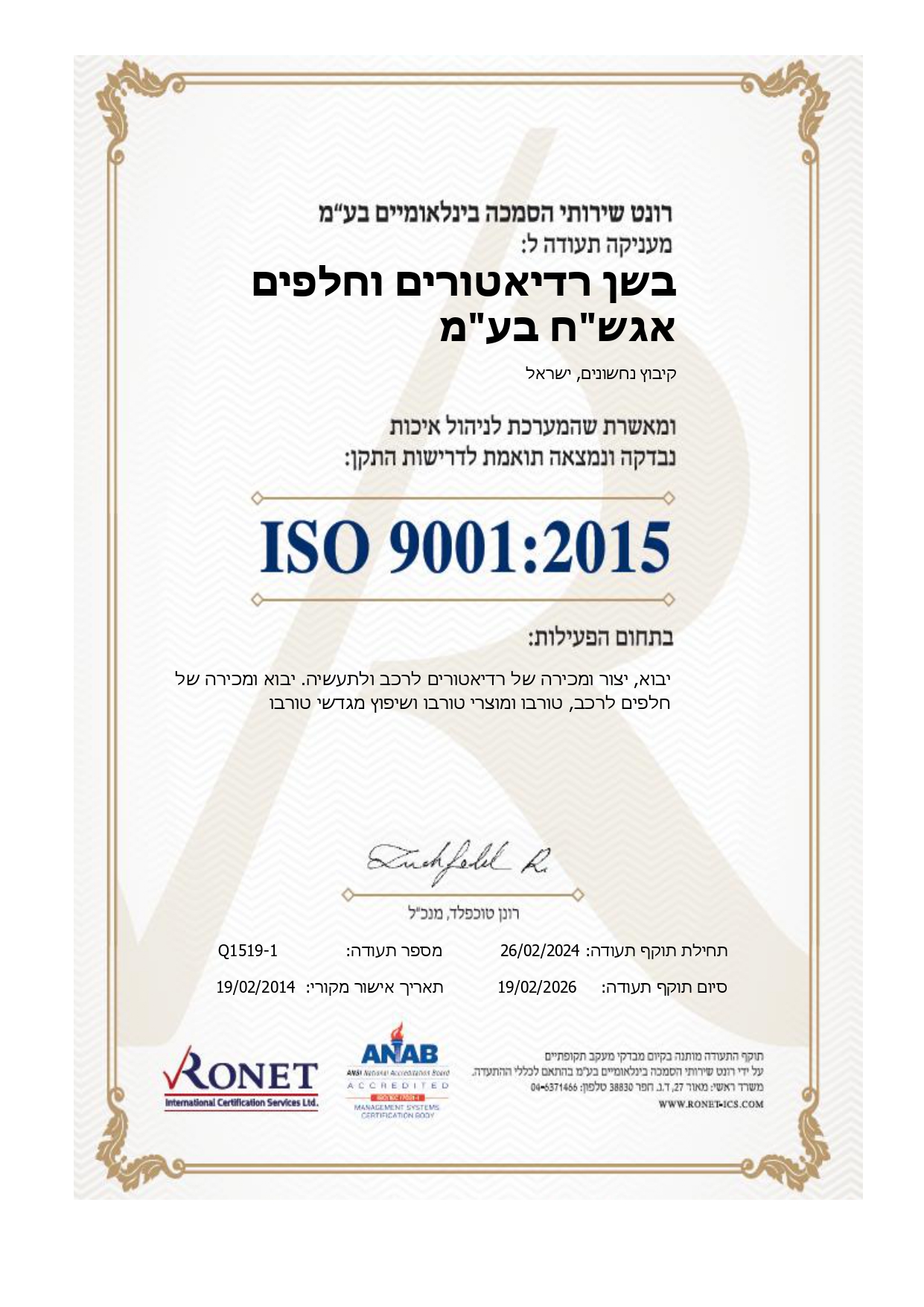 Bashan Radiators has a number of distribution branches spread across the length and breadth of Israel in addition to close cooperation with a large number of distributors, regional radiator facilities and spare parts stores in order to improve availability and service.